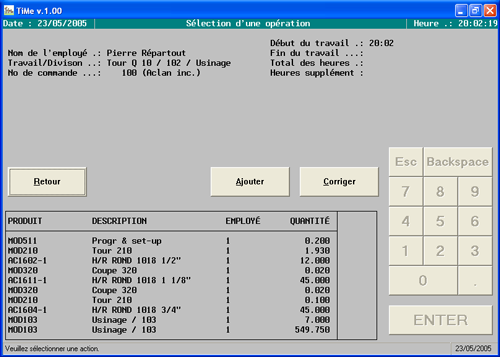 - Fin activité: Termine le calcul du temps de travail de l'employé sur l'opération en cours.