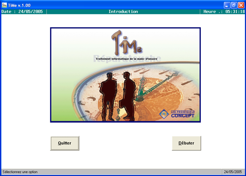 Le fonctionnement de TiMe ressemble au principe d'un «horodateur électronique». Le matin, l'employé inscrit son numéro d'identification et clique sur le bouton Début journée, il indique ensuite le type de travail qui lui a été attribué.