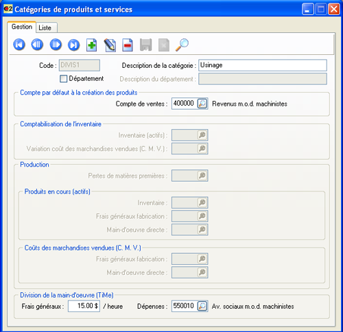 Pour modifier ces boutons, suivez les instructions décrites ci-haut. Sélectionnez le type «Main-d'oeuvre indirecte» lors de la création du produit.