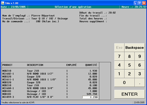 - Fin activité: Termine le calcul du temps de travail de l'employé sur l'opération en cours.